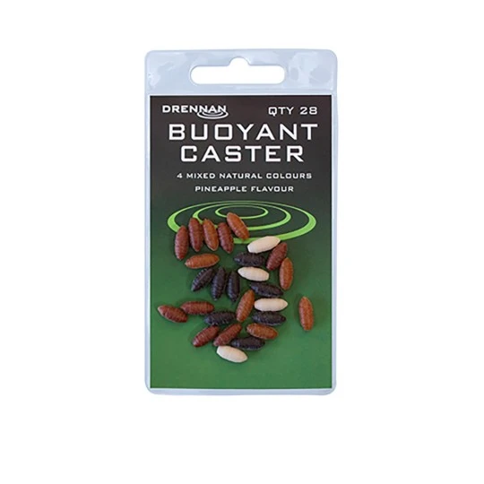 De Buoyant Casters van Drennan zijn drijvende kunstaasjes van zacht, duurzaam kunststof. Door deze te combineren met echte maden of bijvoorbeeld mais kan het haakaas zwevend gemaakt worden. Zeer effectief bij bijvoorbeeld zeelt, brasem of karper.